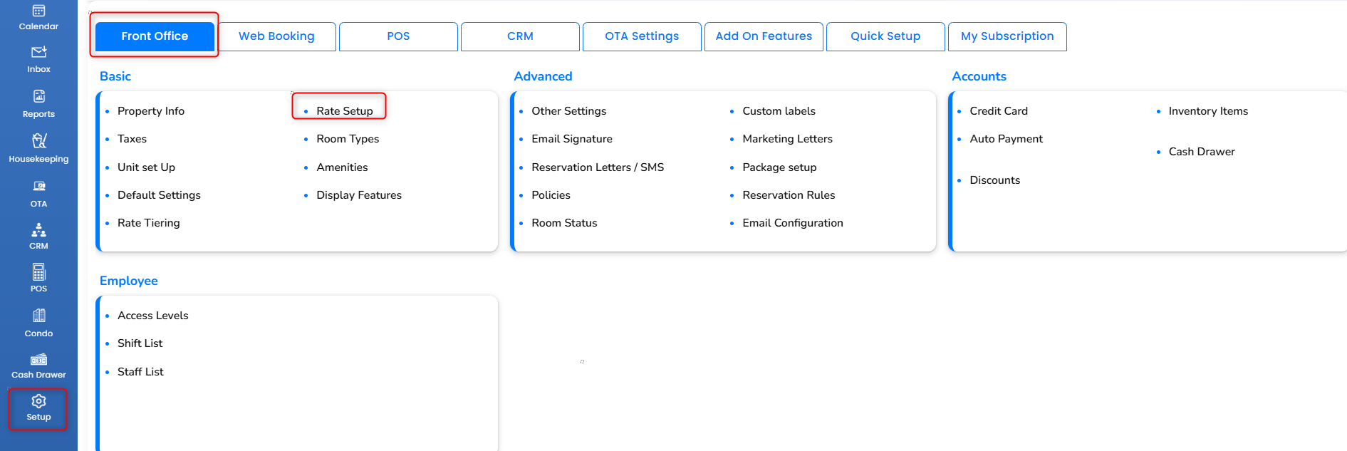 Setup → Front Office → Rate Setup