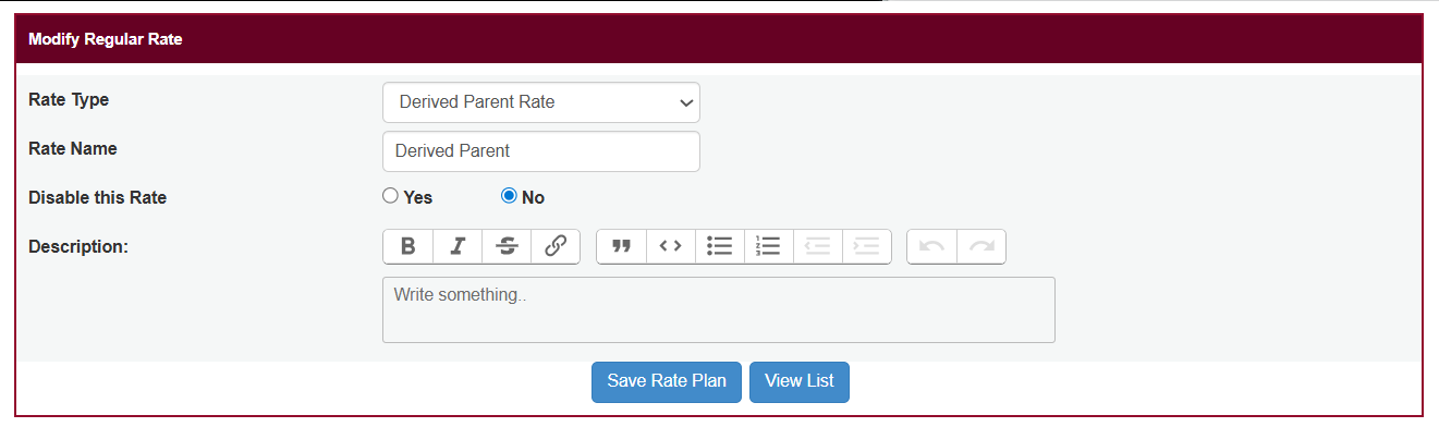 Enter the Parent Rate Name (example: “Family Package Rate”).