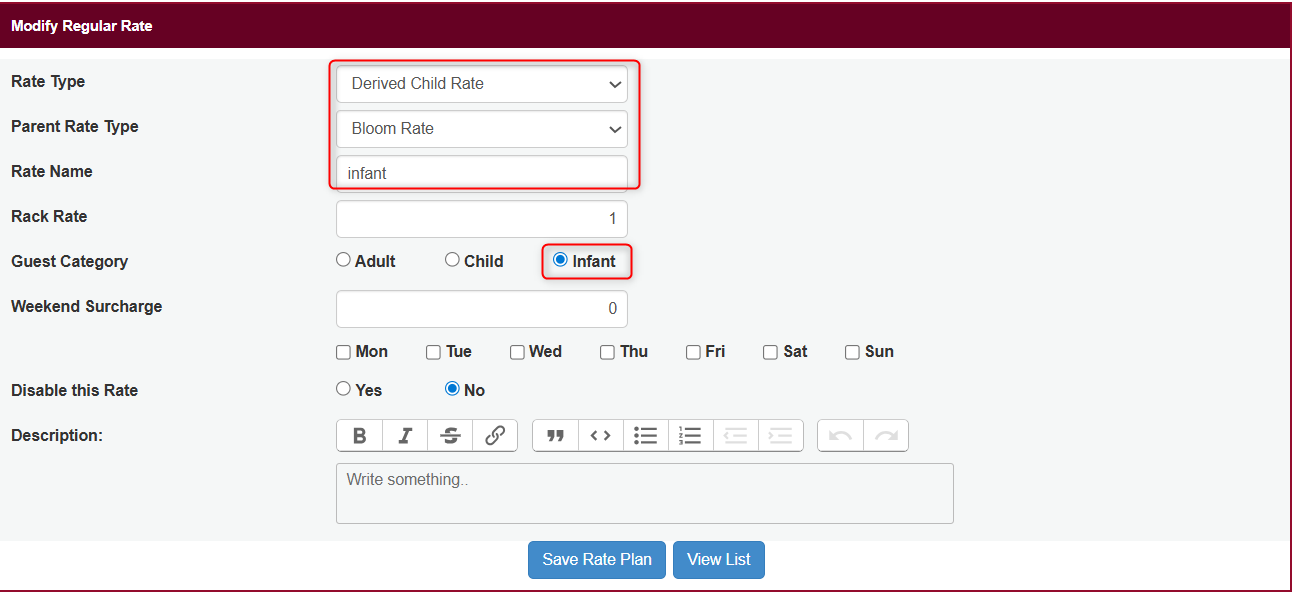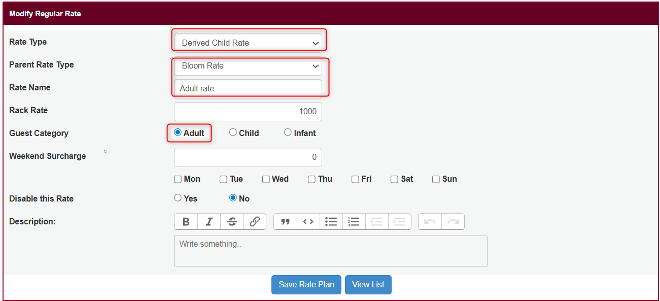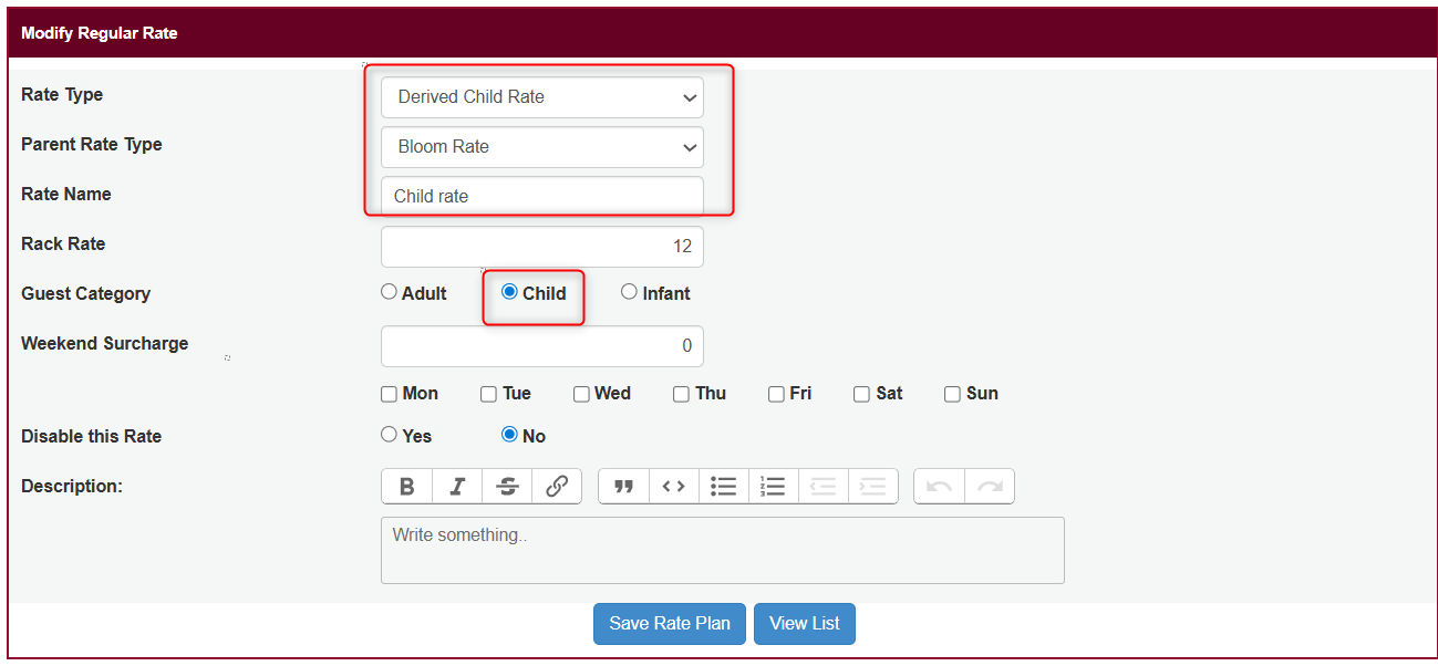 Enter the Child Rate Name (e.g., “Adult Rate”).