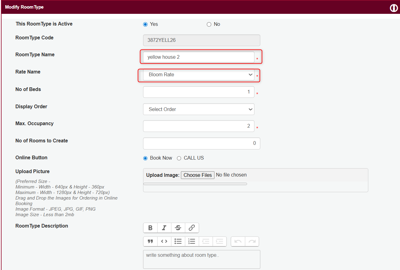Open a Room Type.
